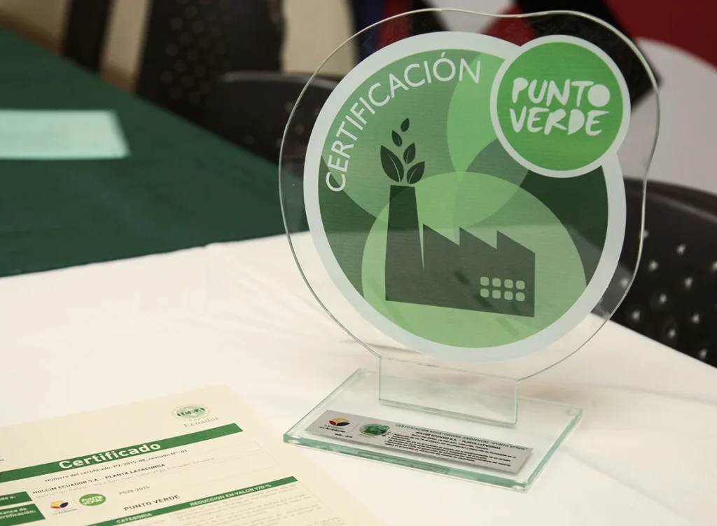 PUNTO VERDE nos certifica como empresa ECO – EFICIENTE esta es una certificación a la aplicación de Buenas Prácticas Ambientales. La evaluación se establece mediante una comparación de indicadores de por lo menos dos años de ejecución- de actividades en los ejes temáticos de gestión de desechos, gestión de papel, uso eficiente de agua, energía y combustibles; capacitación y compras responsables. Hasta el momento solo 10 empresas ecuatorianas han recibido la certificación PUNTO VERDE, siendo Cerámicas Rialto la primera en el área de producción de pisos y paredes.